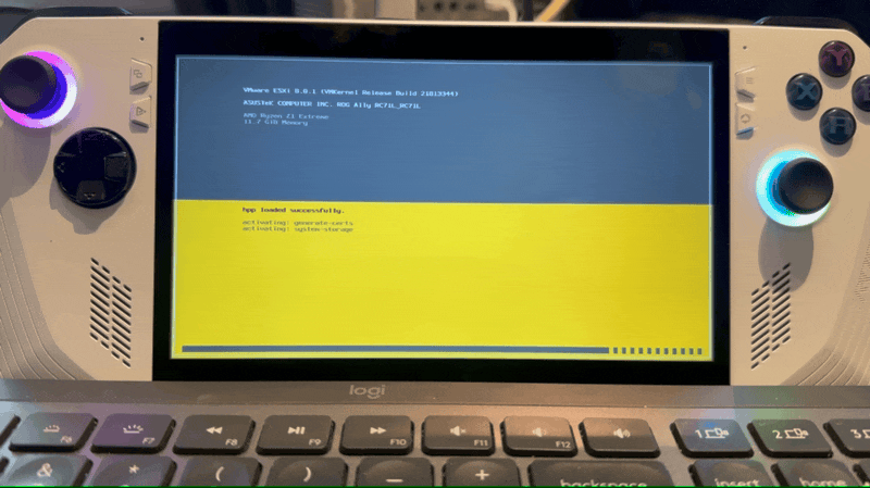Hopefully you should now see ESXi booting, with mine at least I did not need to alter any BIOS settings to get this to work. This is the main GIF on my Twitter post and the header above. If you then follow the steps from Florian to reset the network settings when you head back should now see it has an IP and ready to connect. Don’t forget to change that Root password!